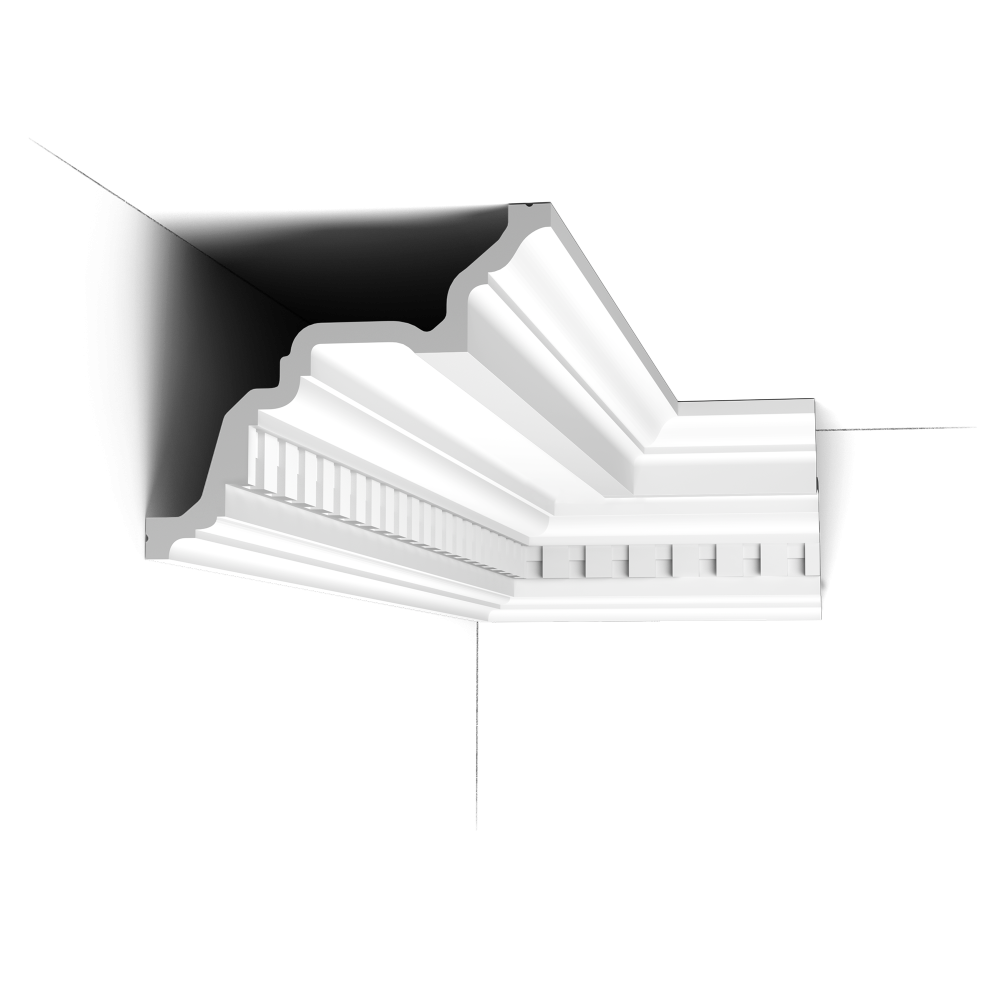 Большой классический карниз с зубчатыми блоками. Мгновенно придает изысканность любому интерьеру. Примечания: Используйте DecoFix Power.